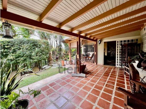 En Los Samanes, en calle cerrada con garita y vigilancia, se vende cómoda PB con terraza y jardín 219m2 de PB 322m2 de terraza y jardín Todo el PB tiene salida a la terraza Cómoda y amplia Habitacion principal con súper vestier y baño interno 2 habitaciones secundarias cada una con su baño TV Room Salón Comedor Cocina Medio baño de visita Habitación y baño de servicio Depósito en el jardín Un agradable jardín y terraza techada 2 puestos Maletero